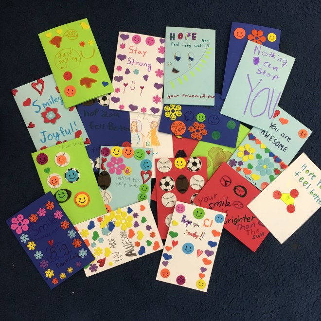 During our December 2017 Holiday Party, we created Caring Cards for children, and then distributed to local children’s hospitals via an organization called Kids Helping Kids, a local organization that develops leadership skills through youth-led service projects. I hope there is such an organization in every state in the United States.